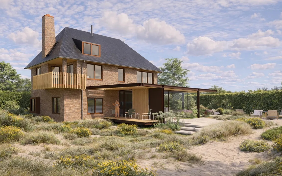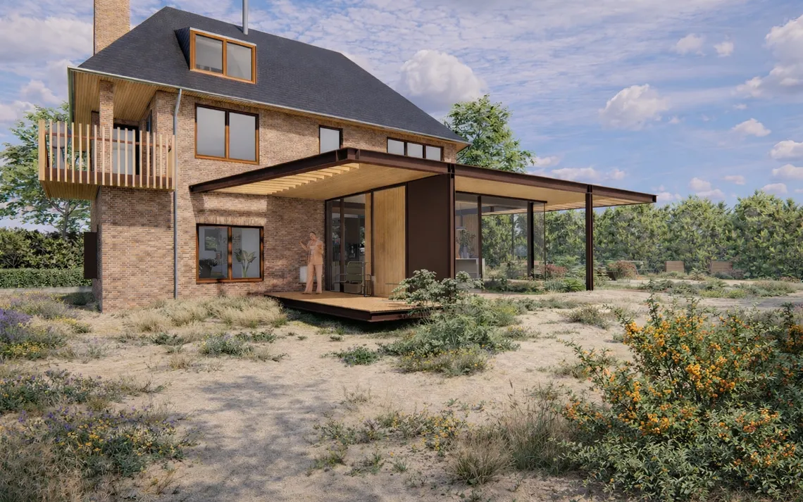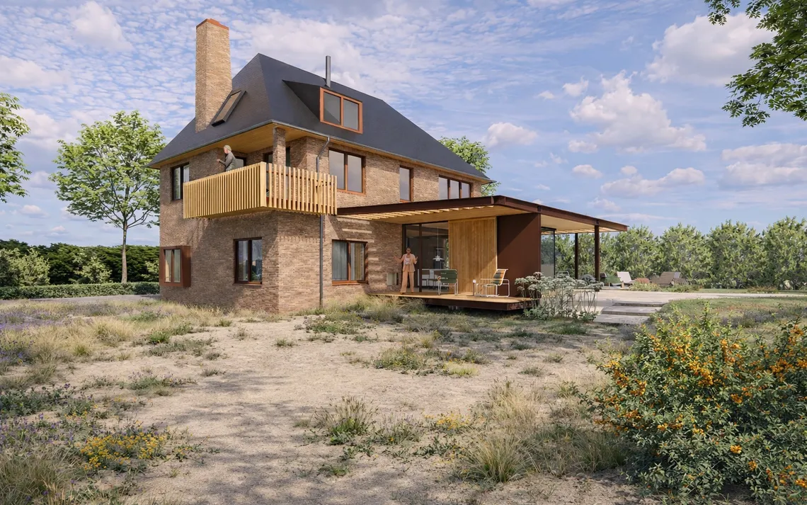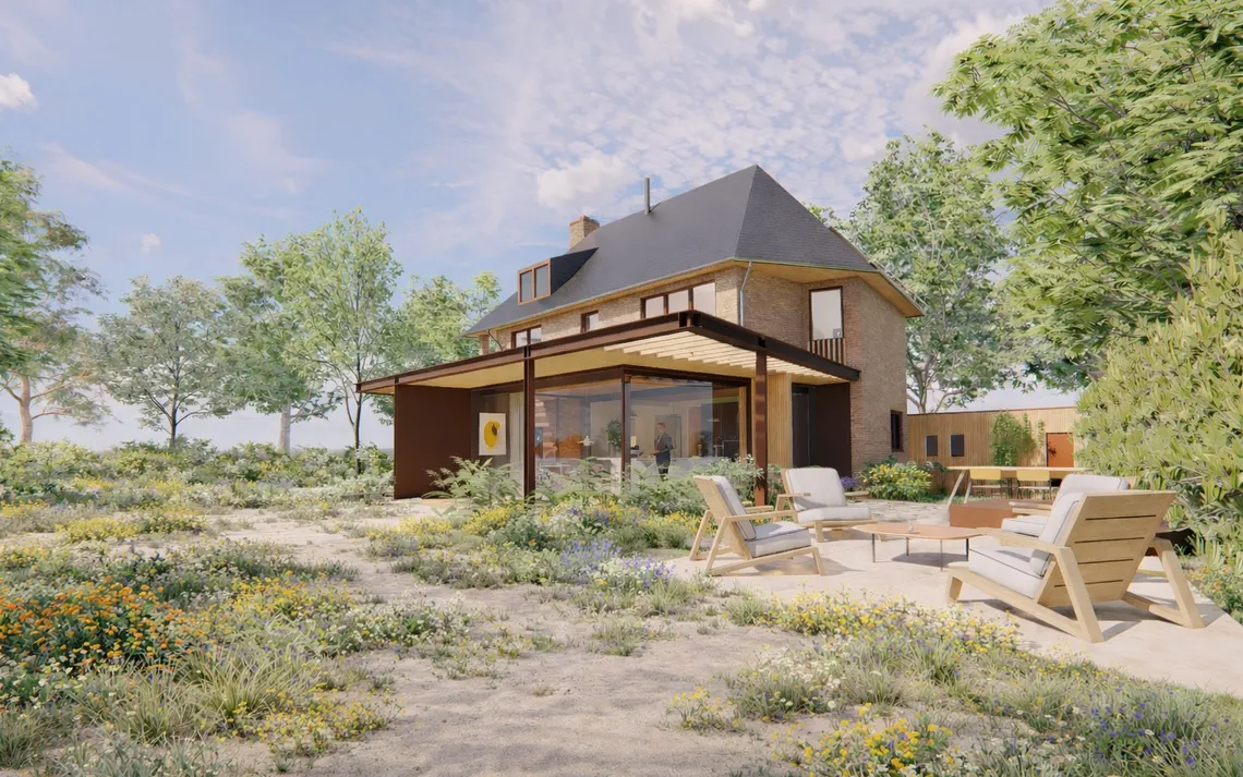 De opgave ligt in het verbinden van deze kwaliteiten zonder het karakter van het bestaande huis te verzwakken. De uitbreiding positioneert zich als een tussenruimte waarin deze overgang wordt georganiseerd, een laag die bemiddelt tussen massa en openheid, tussen huis en landschap.