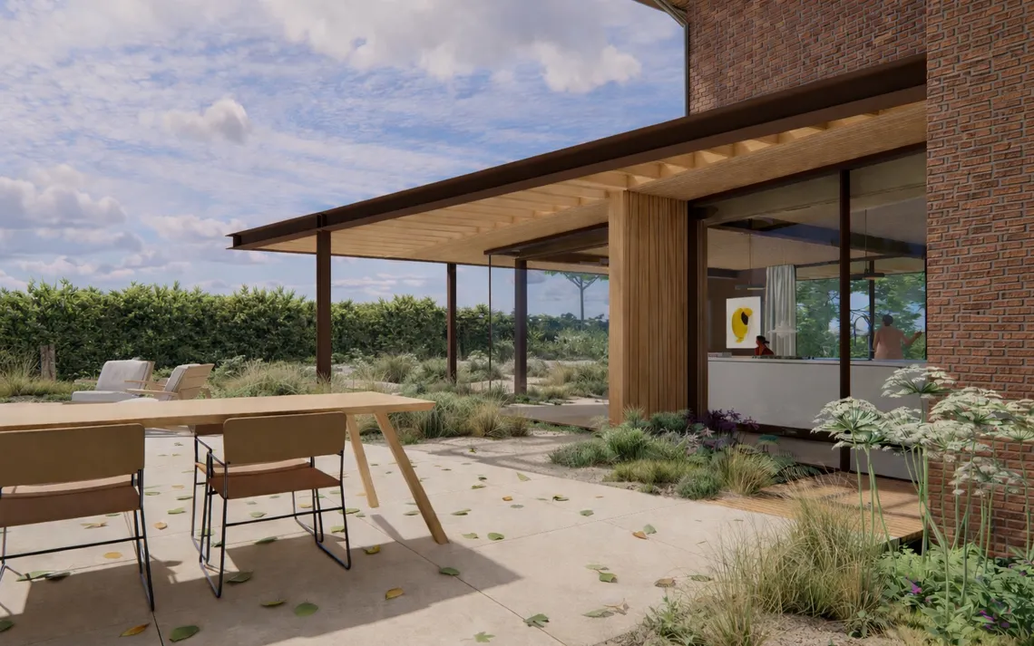 Door de samenhang tussen constructie, materiaal en licht ontstaat een ruimte die zich aanpast aan gebruik en seizoen. De woning wordt niet alleen vergroot, maar opnieuw georiënteerd op haar omgeving.