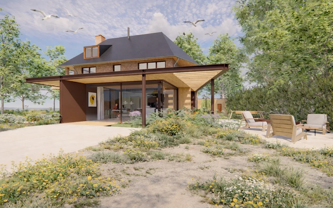 De ingreep richt zich op het dagelijks gebruik van de bewoners en de manier waarop de woning zich tot de tuin en natuur verhoudt. Door de uitbreiding ontstaat een continue overgang waarin interieur en landschap niet langer gescheiden domeinen zijn, maar onderdelen van één samenhangend geheel.